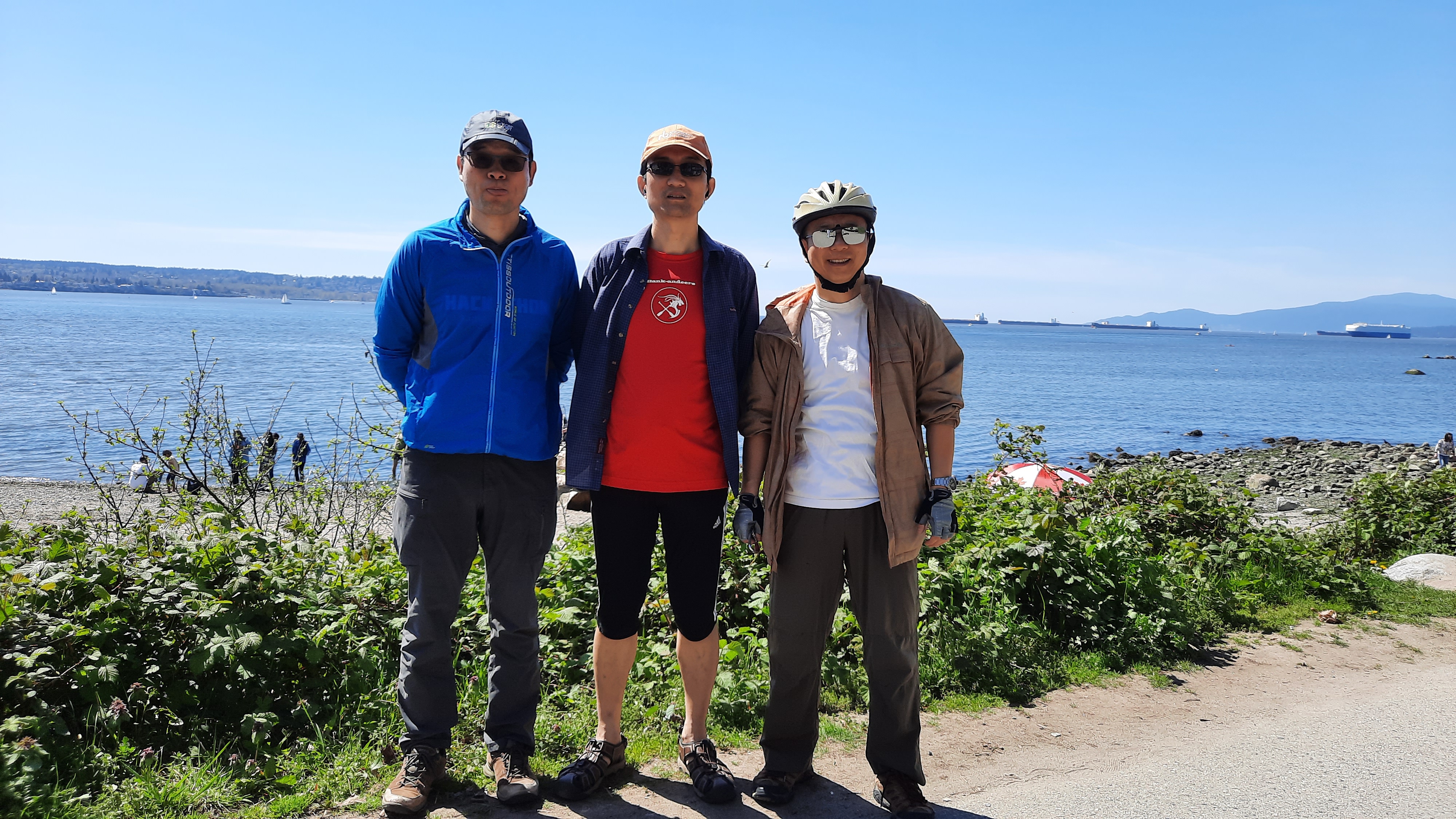 We enjoyed 50km biking in a beautiful sunny day along Central Valley Greenway, North False Creek Seawall, Stanley Park Seawall, Burrard Street Bridge, around Vanier Park. It was really a very nice journey in the afternoon!