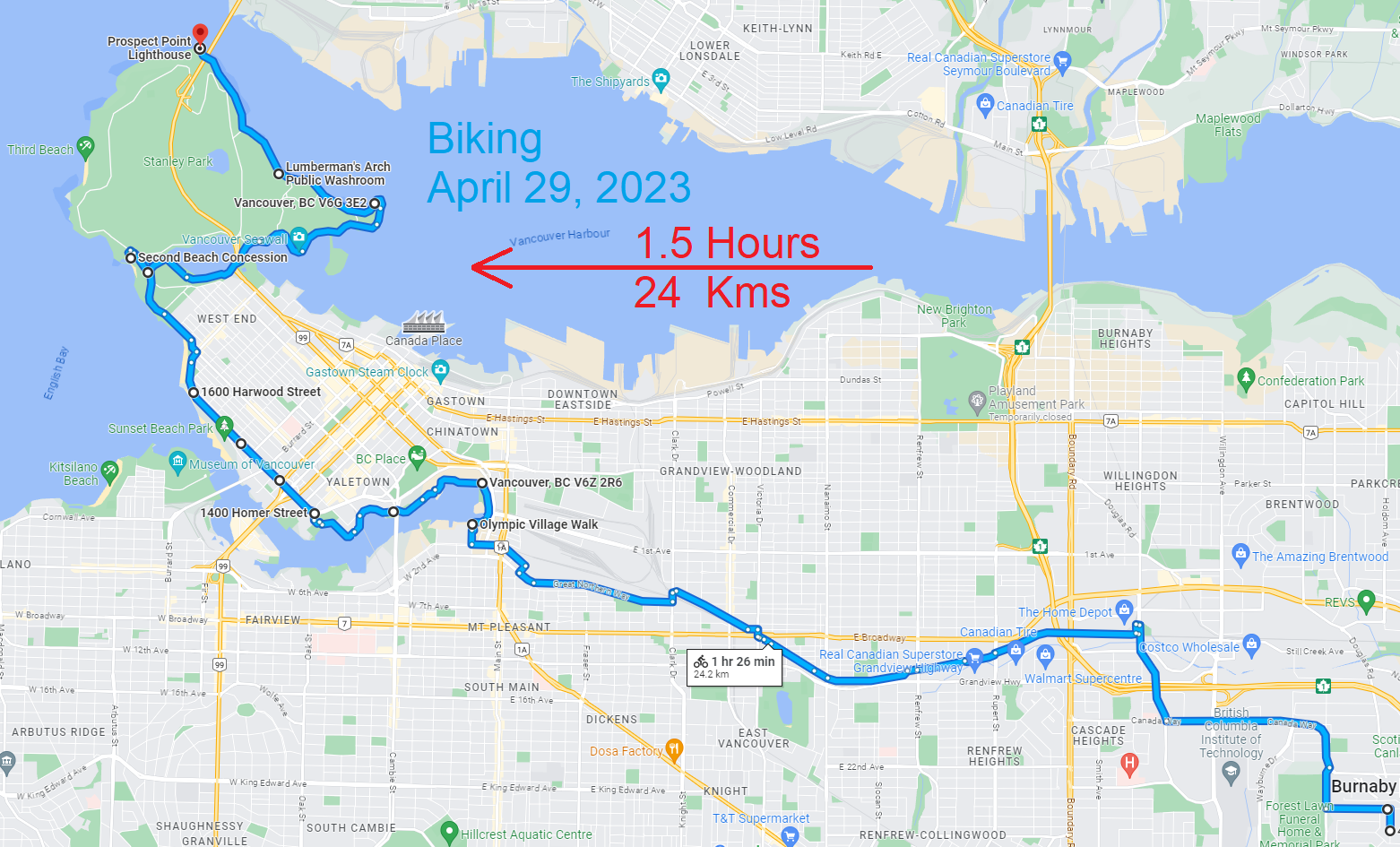 Biking - 20230429 - Burnaby Central to Stanley Park Round Trip